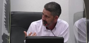 Jadir Pepita, vereador em Campo Mourão, sobre o combate ao mosquito da dengue e a existência de terrenos da prefeitura com lixo que acumula água; durante audiência pública de prestação de contas da Saúde, nesta sexta-feira.
