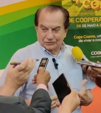 José Aroldo Gallassini, presidente do Conselho de Administração da Coamo, sobre a produção de safras anteriores que fica armazenada; e recordando o confisco bancário feito em 1990 pelo então presidente Fernando Collor de Mello; nesta segunda-feira, em entrevista coletiva.