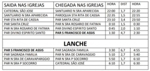 Sai às 22h de sábado, da Catedral, e chega às 6h30 de domingo, percorrendo cerca de 27 km.