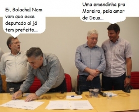Olha aí mais um clic da visita do secretário de Estado da Saúde, Beto Preto, a Campo Mourão, quinta-feira. Enquanto ele assina a liberação da licitação para o novo Cis-Comcam, o prefeito de Moreira Sales, Rafael Bolacha, conversa com o deputado Douglas Fabrício. Tudo observado pelo prefeito anfitrião Tauillo Tezelli.
