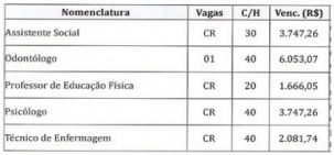 A prefeitura de Boa Esperança abriu nesta terça-feira as inscrições para concurso público. São cinco cargos - assistente social, odontólogo, professor de educação física, psicólogo e técnico de enfermagem. Os salários variam de R$ 1,6 mil a R$ 6 mil. Interessados devem se inscrever até o próximo dia 24. A taxa custa R$ 100 para cargo de nível superior e R$ 50 para cargo de nível médio.