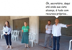 O secretário de Estado Rogério Carboni (Justiça, Família e Emprego) esteve nesta sexta-feira em Campina da Lagoa. Se reuniu com o prefeito MIlton Luiz Alves e equipe da prefeitura. Também visitou a obra de readequações no Cras. Durante a visita, Alves deixou claro que a obra era com recursos próprios, sem nada do Estado. Aí, é claro, aproveitou para pedir uma verbinha para o município.