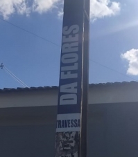 Placa no jardim Tropical 2. Afinal, é travessa ou rua? E seria Das Flores, não seria?