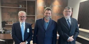 Nova Cantu - O prefeito Airton Agnolin visitou o presidente do TRE, desembargador Wellington Coimbra de Moura. Agradeceu o incentivo para o uso de urnas eletrônicas na eleição do Conselho Tutelar.