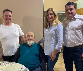 A ex-prefeita de Campo Mourão Regina Dubay visitou nesta segunda-feira o ex-prefeito Augustinho Vecchi. Assunto? Política, é claro. Com 89 anos, Vecchi é o mais antigo prefeito vivo de Campo Mourão. Assumiu a prefeitura pela primeira vez em 1968 e voltou ao Paço Municipal em 1977/83 e 1989/92. O ex-vereador Helton Borges e o empresáro Neto do Termas acompanharam Regina na visita.