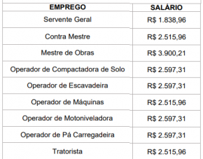 Os salários variam de R$ 1,8 mil a R$ 3,9 mil.