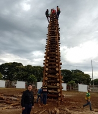 Uma fogueira alusiva a São João, com 13 metros de altura, é uma das atrações do Arraiá de Aniversário de Farol, que acontece neste sábado. A cidade está completando 30 anos. A fogueira será acesa logo após a bênção ao Município, como parte do Show Pirotécnico. A programação também contará com apresentações juninas e do Projeto Qualidade de Vida e show da Banda Garrafão. O prefeito Oclécio Meneses foi conferir a montagem da fogueira.