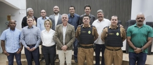 O novo comandante do 11º BPM, major Willian Dieimes Silveira, esteve nesta terça-feira na Câmara de Campo Mourão. Ele se reuniu com o presidente Edilson Martins e mais 11 vereadores antes do início da sessão. Na conversa, segurança pública e efetivo da Polícia Militar para a Campo Mourão. O major Willian assumiu o comando do batalhão na semana passada. Ele será promovido em breve a tenente-coronel.