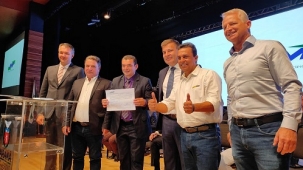 Aconteceu nesta quarta-feira, em Curitiba, a posse da nova diretoria da Associação dos Municípios do Paraná. Assumiu a presidência o prefeito de Santa Cecília do Pavão, Edimar Santos (irmão do ex-prefeito de Boa Esperança, Zé do Caixão). A nova diretoria conta com sete prefeitos da região, sendo Betinho Lima, de Goioerê, o segundo vice-presidente. O tgovernador Ratinho Jr prestigiou a posse.