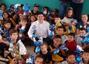 Farol - Crianças matriculadas na rede municipal receberam ovos de chocolate. Quem tem intolerância a glúten e lactose recebeu ovos de chocolate diet. O prefeito Oclécio Meneses participou da entrega.