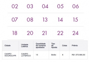 A aposta foi um bolão de seis cotas feito na lotérica Campo Lotérico.