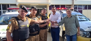 Terra Boa - A 5ª Cia de Cianorte repassou nesta quarta-feira uma nova viatura para o Destacamento da PM. A entrega aconteceu em frente à prefeitura com a presença do prefeito Edmilson Moura.