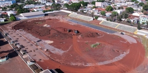 O gramado antigo foi retirado no início da construção da nova pista de atletismo.