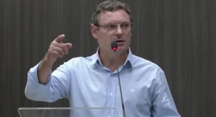 Escrivão Parma, vereador em Campo Mourão, agracecendo a novas viaturas policiais para Campo Mourão, mas lembrando que há necessidade de nomeação de mais policiais para o município; na sessão da Câmara desta segunda-feira.