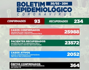 Noventa e três casos de covid-19 foram confirmados neste domingo em Campo Mourão. É o menor número em muitos dias. Os recuperados foram 234 e o número de casos ativos caiu para 2.052. Houve uma redução de casos ativos de quase 30% em relação ao pior momento da pandemia, quando este número passou de 2.900. Não foram divulgados os índices de ocupação de leitos.
