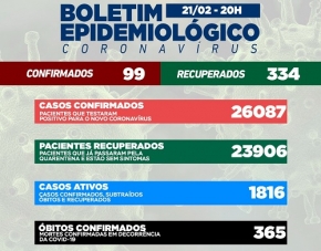 Pelo segundo dia seguido Campo Mourão teve menos de 100 casos de covid-19 confirmados. Foram 99 nesta segunda-feira, com 334 recuperados. Assim, o número de casos ativos caiu para 1.816. Foi confirmada a morte de homem de 51 anos. Na ala covid, a taxa de ocupação de leitos do SUS está em 125% na enfermaria e 60% na UTI. São 10 pacientes na enfermaria e sete na terapia intensiva.