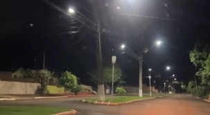 Júnior Garbim, prefeito de Engenheiro Beltrão, durante gravação de um vídeo em que, de carro, mostra como ficaram algumas ruas após a instalação de lâmpadas de led; em postagem em redes sociais.