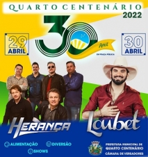 Casos de covid-19 em baixa na região e as prefeituras vão anunciando a volta das festas. Agora foi a vez do prefeito Akio Abe, de Quarto Centenário. O município completará 30 anos no fim do mês com dois shows em praça pública. No dia 29 tem banda Herança e no dia 30 o cantor Loubet. Haverá barracas de alimentação com renda revertida para entidades locais.