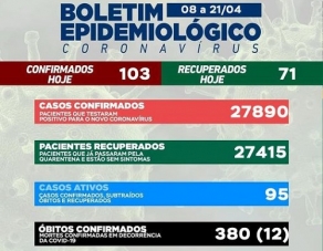 Foram 103 confirmações nesse período, com 71 recuperados.