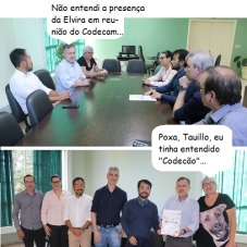 Os cliques são desta terça-feira, quando o pessoal do Codecam foi à prefeitura levar sugestões para o decreto de regulamentação da Lei de Inovação. A vereadora Elvira Schen, famosa pela defesa da causa animal, participou do lado do prefeito Tauillo Tezelli. Codecam é o Conselho de Desenvolvimento de Campo Mourão.