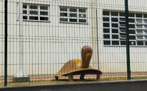 A nova escola Gurilândia, de Campo Mourão, ainda não foi inaugurada, mas olha só quem já chegou ao novo endereço. Sim, a tartaruga original do parquinho que deu origem à escola. Trata-se do único brinquedo que restou do playground que fez sucesso nos anos de 1970. Virou símbolo da Gurilândia, que vai se mudar para a nova estrutura, na av. Jorge Walter esquina com rua Guarapuava.