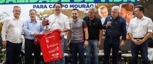 2) O governador não saiu de Campo Mourão sem ganhar uns mimos. Nada de cesta de produtos agrícolas, não. Ganhou brindes dos times de futsal e de basquete.