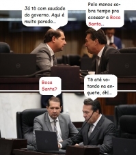 Os cliques são desta terça-feira, na Assembleia Legislativa do Paraná. Os deputados Marcel Micheletto e Márcio Nunes, que voltaram à casa depos que deixaram o governo do Estado, aproveitaram a sessão para colocar a conversa em dia.