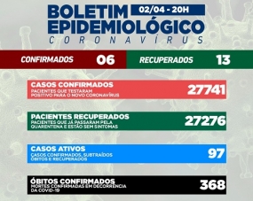 Caiu para menos de 100 o número de moradores de Campo Mourão com o vírus ativo da covid-19. É o que mostra o boletim divulgado neste sábado. Foram confirmados mais seis casos e houve 13 recuperados. Com isso, os casos ativos caíram para 97. Na ala covid, há quatro pacientes internados - dois na enfermaria e dois na UTI.