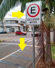 Na av. Goioerê, a sinalização horizontal para estacionamento de motos foi apagada, mas a placa (sinalização vertical) continua no local. E agora?