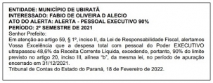 O município encerrou o primeiro semestre do ano passado comprometende acima de 48,6% da receita corrente líquida com a folha de pagamento. Não estourou o limite da Lei de Responsabilidade Fiscal, mas já rendeu o alerta publicado nesta terça-feira pelo Tribunal de Contas do Estado.