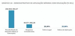 Já a Secretaria de Saúde teve despesas de 19,89%, ou seja, acima do índice mínimo de 15%