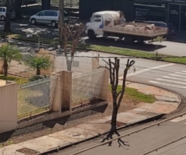 Na área central de Campo Mourão cortaram essas duas árvores ainda jovens, semana passada. Elas faziam uma sombra maravilhosa. Morei em Cascavel e Guarapuava há uns 20 anos e nessa época já era proibido cortar os galhos das árvores dentro do próprio quintal, sem autorização, que dirá as árvores da rua. Com as temperaturas elevadas que estamos vivendo, considero um crime fazer isso.