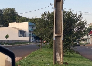 Av. Armelindo Trombini, cruzamento com a rua que passa atrás do ginásio JK e vai para o jardim Flora. Árvore e poste prejudicam a visão do motorista, deixando evidente o risco de acidentes.