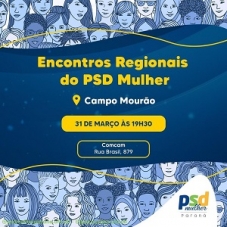 1) O PSD Mulher agendou encontro regional em Campo Mourão. Será no próximo dia 31, às 19h30, na sede da Comcam. A vice-prefeita de Campo Mourão, Fátima Nunes, é filiada ao partido.