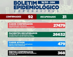 Campo Mourão registrou 92 novos casos de covid-19 nesta sexta-feira. Os recuperados foram um terço disso, 31. Foi o segundo dia seguido em que as confirmações superaram, com folga, as recuperações. Assim, o número de casos ativos voltou a subir e se aproximou de 500 (479). Já na ala covid as internações diminuíram. Há dois pacientes na UTI, um de Terra Boa e outro de Ubiratã. A enfermaria está vazia.