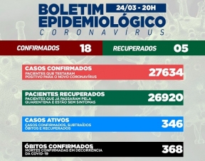 A ala covid dos hospitais de Campo Mourão, que ficou vazia na quarta-feira, voltou a ter ocupação nesta quinta. Há um paciente de Campo Mourão na UTI e um de Roncador na enfermaria. Os novos casos confirmados foram 18, com cinco recuperações. Com isso, o número de casos ativos subiu para 346.