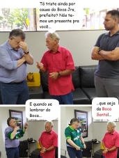 Os cliques são de terça-feira, quando o prefeito de Campo Mourão, Tauillo Tezelli, ganhou uma camisa do Palmeiras, presente do Cido e do Luiz, do Barreiro das Frutas. O presente foi entregue no gabinete do presidente da Câmara, Edilson Martins. Cido e Luiz são amigos do vereador Subtenente Macedo, que também estava presente.