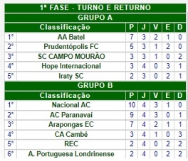 O time de Campo Mourão volta a jogar no feriado de quinta-feira (15h30), em Peabiru, contra o Iraty (3 jogos e 2 pontos).