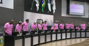 Os 13 vereadores participaram da sessão desta segunda-feira usando camisetas cor-de-rosa. Foi uma referência ao Outubro Rosa. As camisetas foram repassadas pela deputada Maria Victoria.