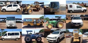 Tem camionete, carro de passeio, caminhão, trator, ambulância, van, ônibus e motoniveladora, a maioria em bom estado.