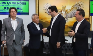 O governador Ratinho Jr liberou nesta terça-feira mais R$ 43,6 milhões para 11 municípios através do programa Asfalto Novo, Vida Nova. Um deles é Quarto Centenário, que vai receber R$ 1,4 milhão para obras de pavimentação e R$ 777 mil para instalação de LED na iluminação pública. A prefeitura entra com a contrapartida de R$ 197 mil. O prefeito Akio Abe esteve presente. O secretário de Estado Márcio Nunes (Turismo) também.