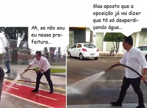 Os cliques são desta sexta-feira, na hora dos preparativos finais para a inauguração da revitalização da praça Padre Luigi Depaoli, no centro de Goioerê. O prefeito Betinho Lima esteve por lá e deu uma mãozinha para o pessoal da limpeza. Ah, tá pensando o quê!...