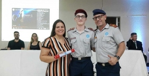 Solenidade militar marcou a entrega de diplomas de colação de grau aos formandos do ensino médio e fundamental do Colégio Vila Unicampo, de Campo Mourão. A cerimônia incluiu a entrega de medalhas de Honra ao Mérito Escolar. Após a entrega dos certificados aos formandos, aconteceu a cerimônia de troca de luvas. Dhielleys Gabrieli Reis Ferreira foi a oradora em nome dos formandos.