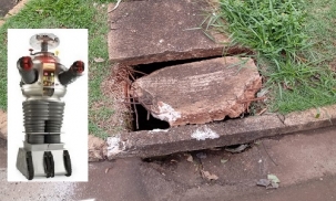 Melhor não pisar sobre a tampa do bueiro da av. Comendador Norberto Marcondes, esquina com a rua Rocha Pombo.