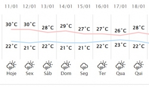 Tá calor aí? Calma, A Previsão do Simepar diz que começa a chover nesta quinta-feira em Campo Mourão. São esperados 13 mm. E que a chuva não fica só por hoje, não. Serão pancadas diárias pelo menos até o próximo dia 25. Todo dia! O máximo previsto é de 17,6 mm, para segunda-feira. Tem dia que mal vai chegar a 1 mm, mas a temperatura dá uma amenizada e não deve passar dos 30 graus nos próximos dias.