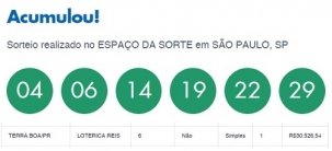 Ninguém acertou as seis dezenas do concurso da Mega Sena sorteados nesta terça-feira. Assim, o prêmio ficou acumulado e deve chegar a R$ 27 milhões no próximo sorteio. A quina teve 70 apostas vencedores, sendo quatro do Paraná e uma delas da região. O “quase milionário” da Comcam é de Terra Boa, em aposta feita na lotérica Reis. Prêmio pela quina? R$ 30,5 mil.