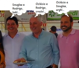 Olha quem se encontrou neste domingo, no Boi no Rolete servido pelo Rotary, em Campo Mourão. O prefeito Oclécio Meneses (Farol), o deputado Douglas Fabrício e o ex-vice-prefeito Rodrigo Salvadori. Os três estão cotados para saírem candidatos a prefeito de Campo Mourão na eleição do ano que vem. Ah, digamos que estavam unidos por uma boa causa, afinal, parte da renda do almoço vai para a Casa das Fraldas...