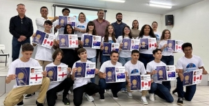 O Núcleo Regional de Educação de Goioerê fez solenidade para repassar os passaportes para os 15 alunos de sua área de abrangência que farão parte da próxima etapa do programa “Ganhando o Mundo”. Eles são de sete cidades – Boa Esperança, Goioerê, Janiópolis, Juranda, Mariluz, Moreira Sales e Ubiratã. O grupo fará intercâmbio na Austrália, Canadá, Inglaterra e Nova Zelândia. Os prefeitos Betinho Lima (Goioerê) e Ismael Dezanoki (Janiópolis) prestigiaram o evento.