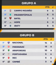 O Prudentópolis é vice-líder, com 8 pontos, e o Batel terceiro, com 7.