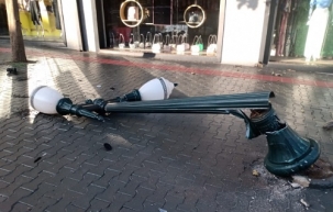 Poste republicano derrubado na esquima da av. Manoel Mendes de Camargo com a rua Harrison José Borges.